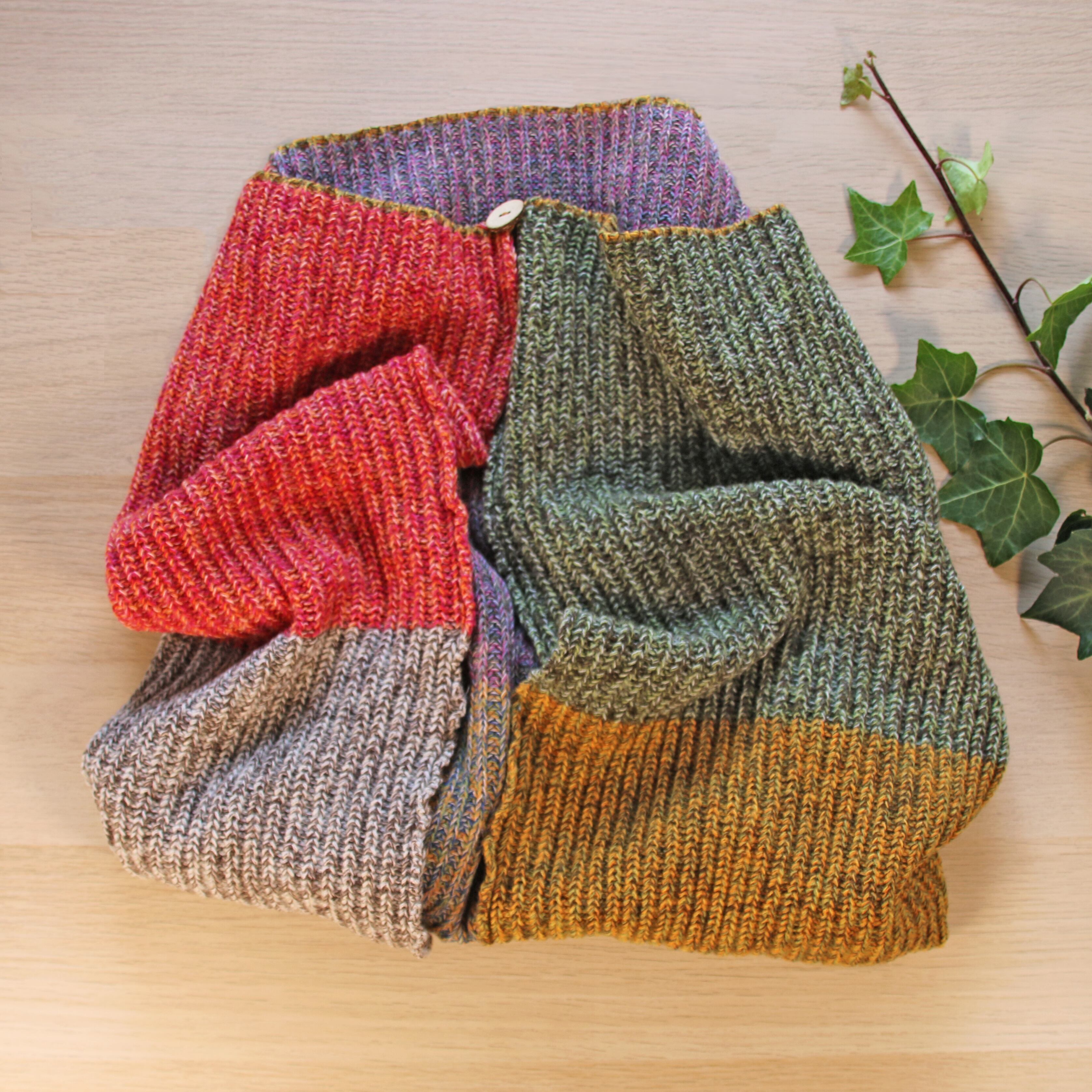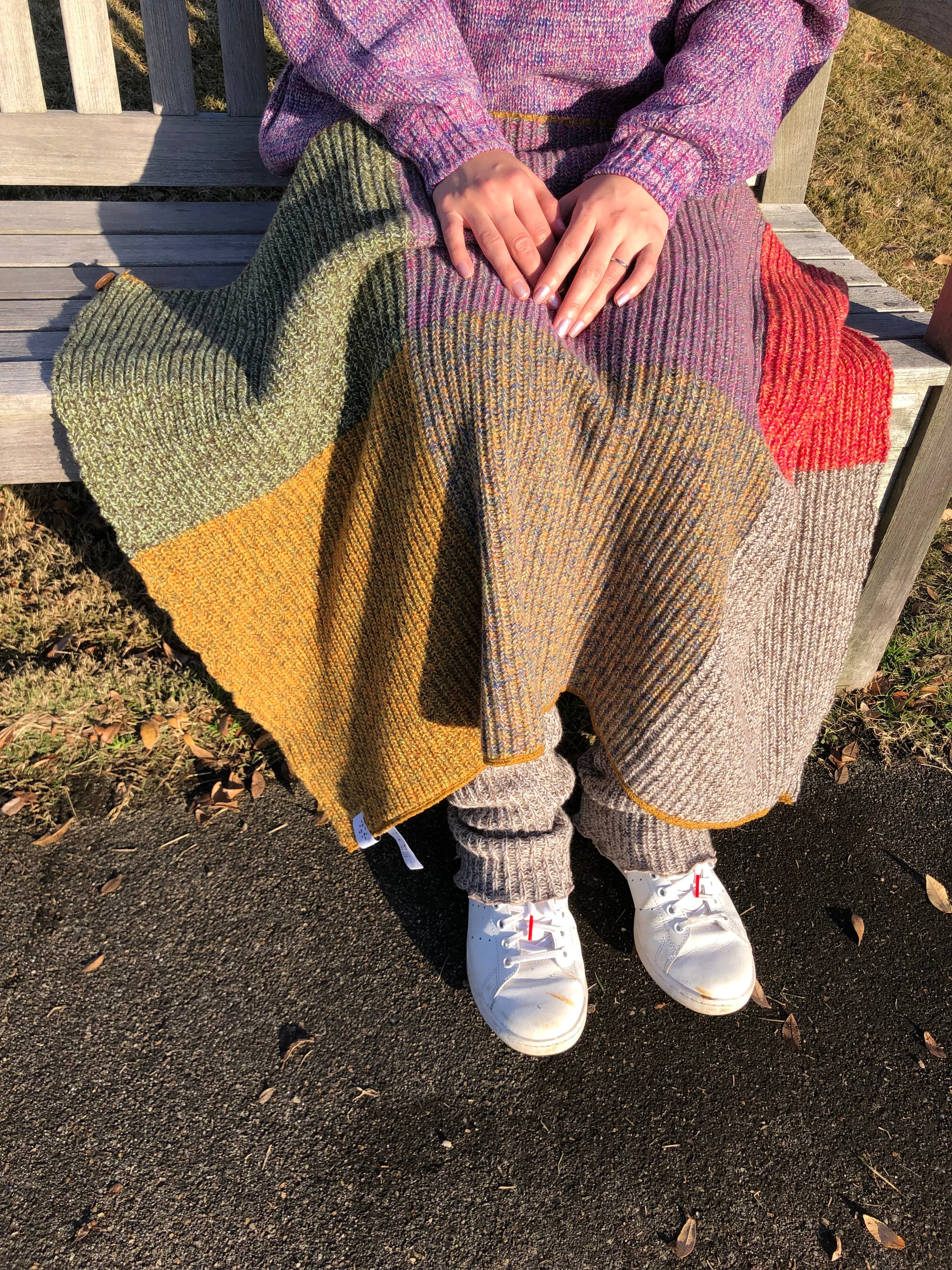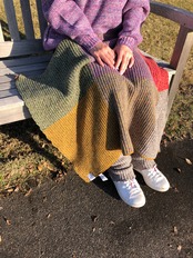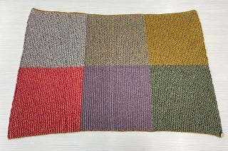 使われなくなった12色の糸を組み合わせた、軽くふくらみのある畦編みニットのミニサイズブランケットです。
