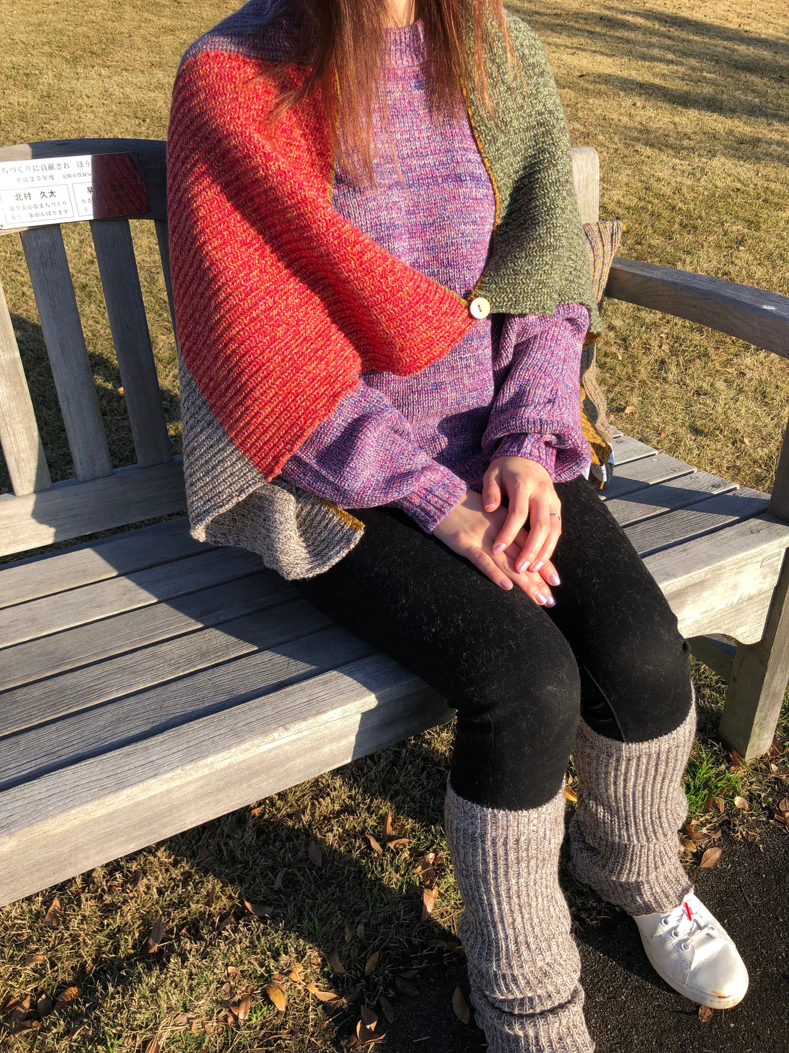 ひざ掛けや、釦で止めて肩掛けすることもできます。寒い季節のアウトドアの他、夏の冷房のオフィスでも活躍できるサイズです。