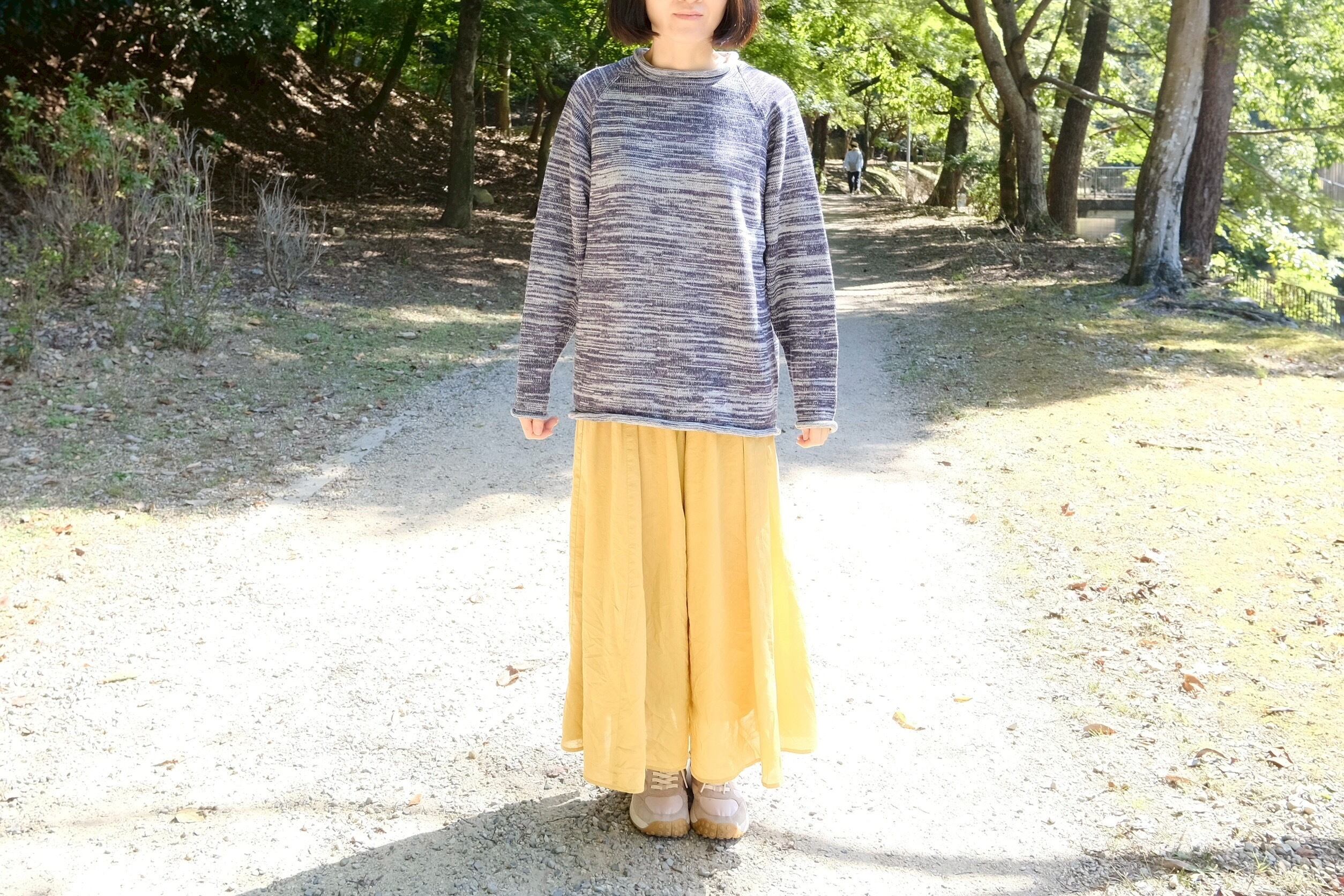 エキストラファインメリノ(19.5ミクロン)は通常のウールと比べて繊維が細く、ソフトで軽やかな上質素材です。ウールらしいふくらみと、天然繊維の持つ保温性や調湿性を備え、新潟の職人さんが横編み機を使い手作業で大切に編み立てました。